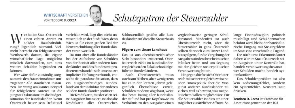Oberösterreich – Schutzpatron der Steuerzahler - IWS - Initiative Wirtschaftsstandort Oberösterreich